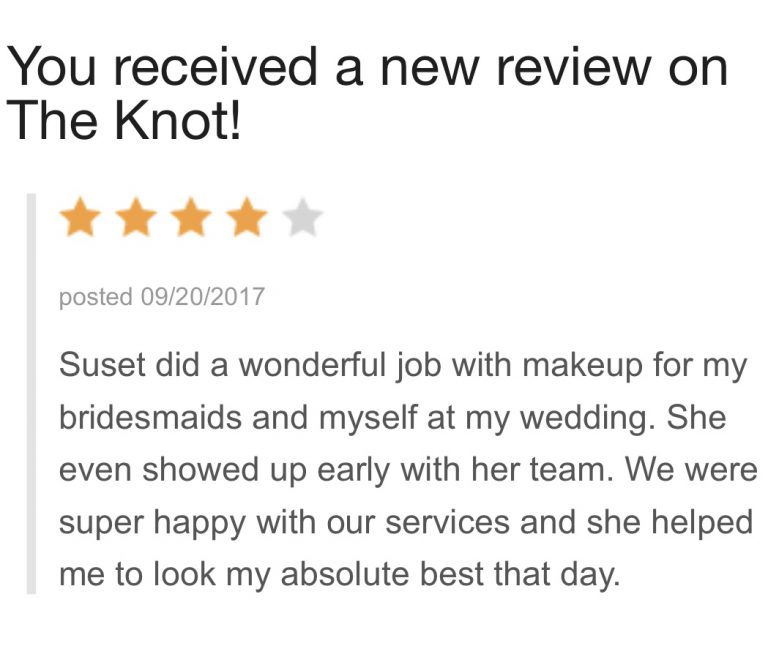 WOW! Suset is such a talented artist. I could not believe how she transformed me, I felt like a move star! She’s sweet, personable and totally nails the look. I cannot wait to use her for my August wedding. Truly amazing!!!